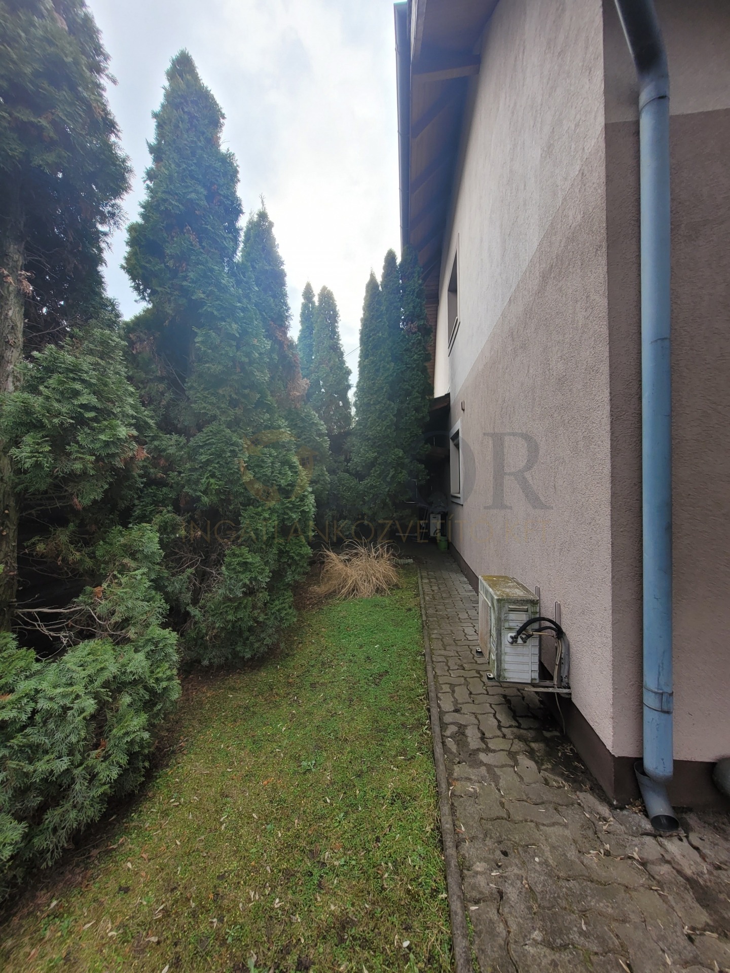 Az ingatlanhoz tartozik egy teljesen leválasztott, privát telekterület (300 m²), amelyet kizárólag a tulajdonosok használhatnak. A telken belül kialakított fedett kocsibeálló két autó számára, az ingatlan előtt pedig további négy autó parkolására van lehetőség.