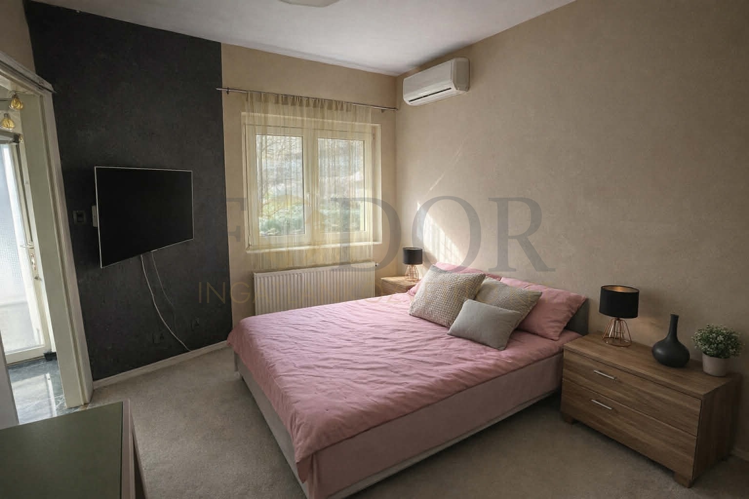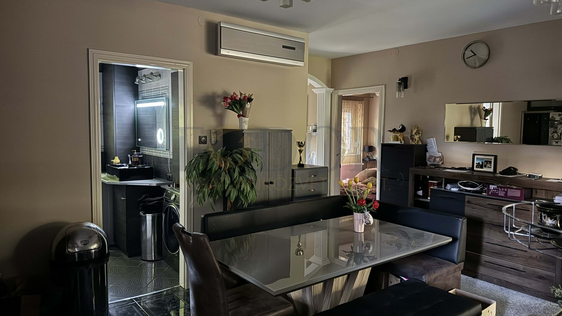 Az ingatlan prémium konyhabútorral van felszerelve, amely beépített sütőt, kerámia főzőlapot és szagelszívót tartalmaz. A nappali, az előszoba és a szobák igényes beépített szekrényekkel büszkélkedhetnek. A kényelem érdekében a lakás prémium kategóriás inverteres hűtő-fűtő klímákkal van felszerelve, 2 db 2,5 kW-os és 3 db 3,5 kW-os egységgel. A nyílászárók műanyagból készültek, kétrétegű, öt légkamrás thermo üvegezéssel, redőnnyel és szúnyoghálóval. A biztonságot szolgáló bejárati ajtó is műanyag, biztonsági zárral ellátva. A szobák padló szönyeggel további helyiségek hideg burkolt. A fűtést és melegvíz-ellátást egy 24 kW-os Sanuier Duval gázkazán biztosítja, amely padló- és radiátoros hőleadást alkalmaz.