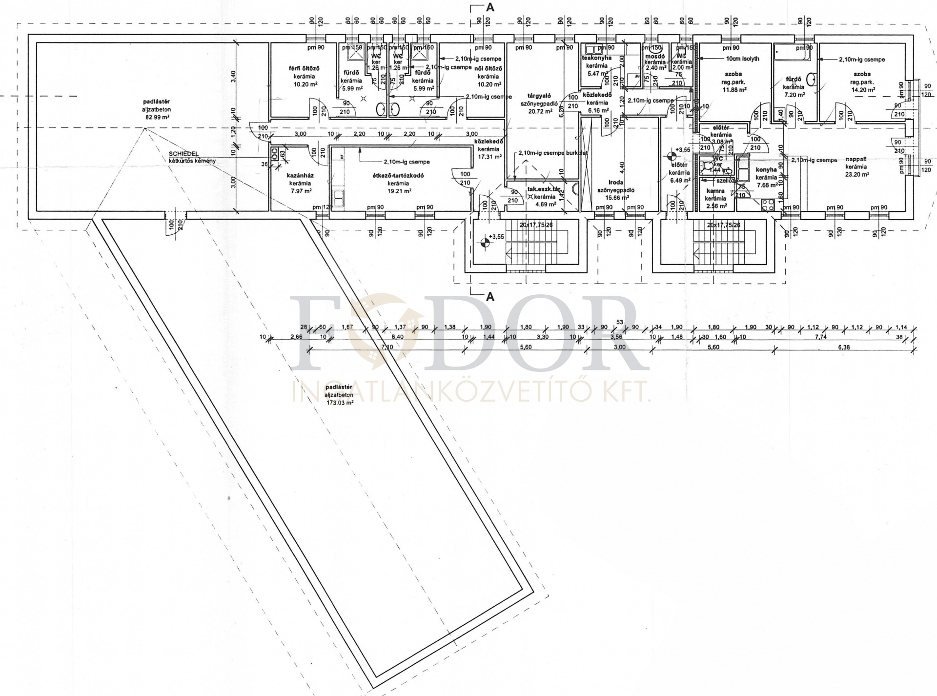 • 173 m²-es és 83 m²-es egybenyitott terek – raktározásra, könnyűipari tevékenységre vagy akár további irodai funkcióra is alkalmas