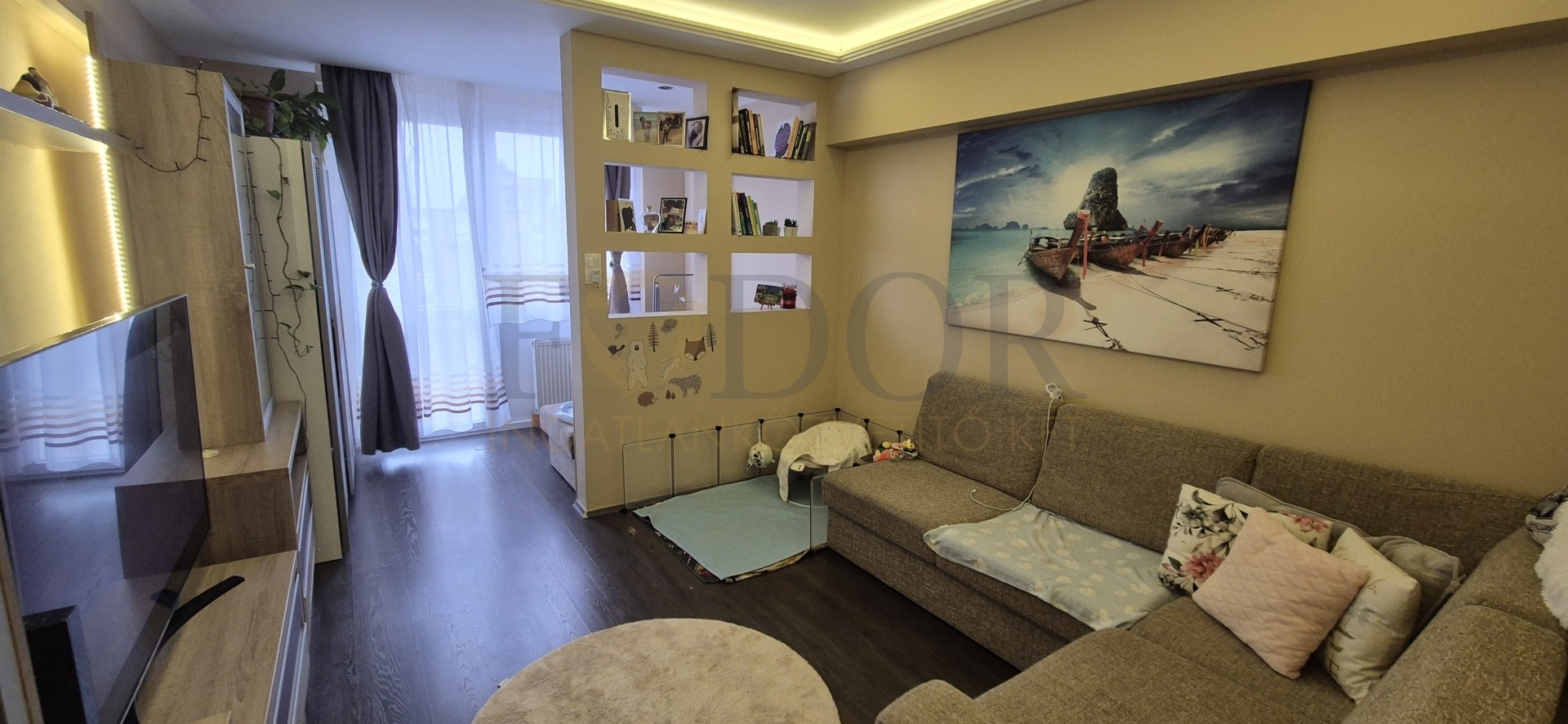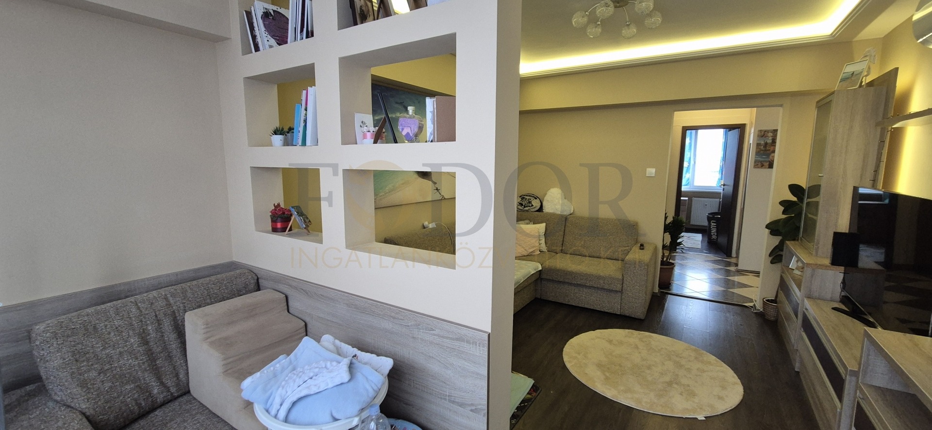 • Igényes gipszkarton térelválasztó a nappaliban (igény szerint visszabontható)