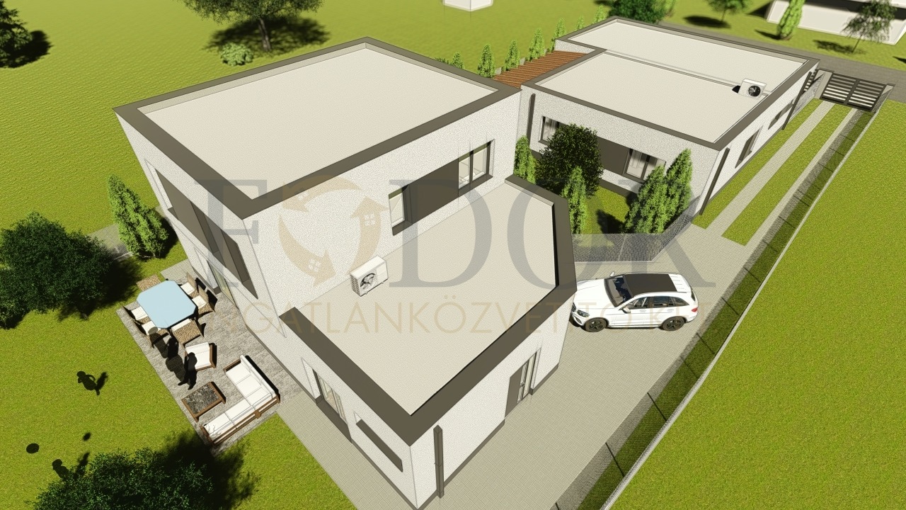 A projekt során két különálló ház épül egy osztatlan közös telken, teljesen elkülönített bejárattal, kertrésszel és közműórákkal. A házak ügyvédi használati megosztással kerülnek értékesítésre.