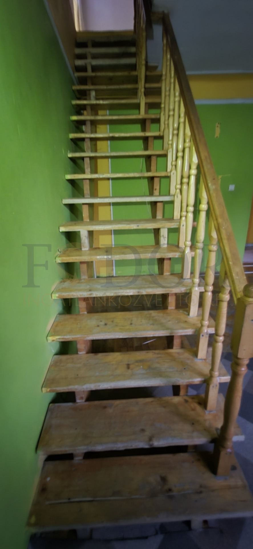 • Földszint: előszoba, közlekedő, egy szoba, konyha, fürdőszoba, külön WC, valamint egy 36 m²-es tágas nappali, fa lépcsővel az emeletre.