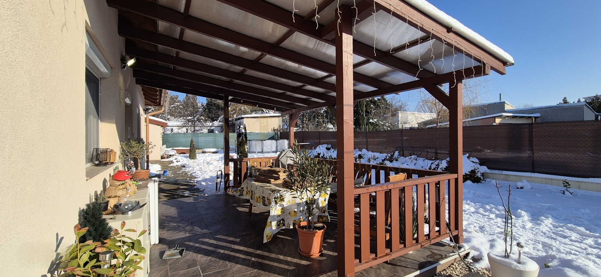 • Fedett, kb. 16 m²-es polikarbonát terasz – tökéletes helyszín reggeli kávéhoz, családi és baráti összejövetelekhez