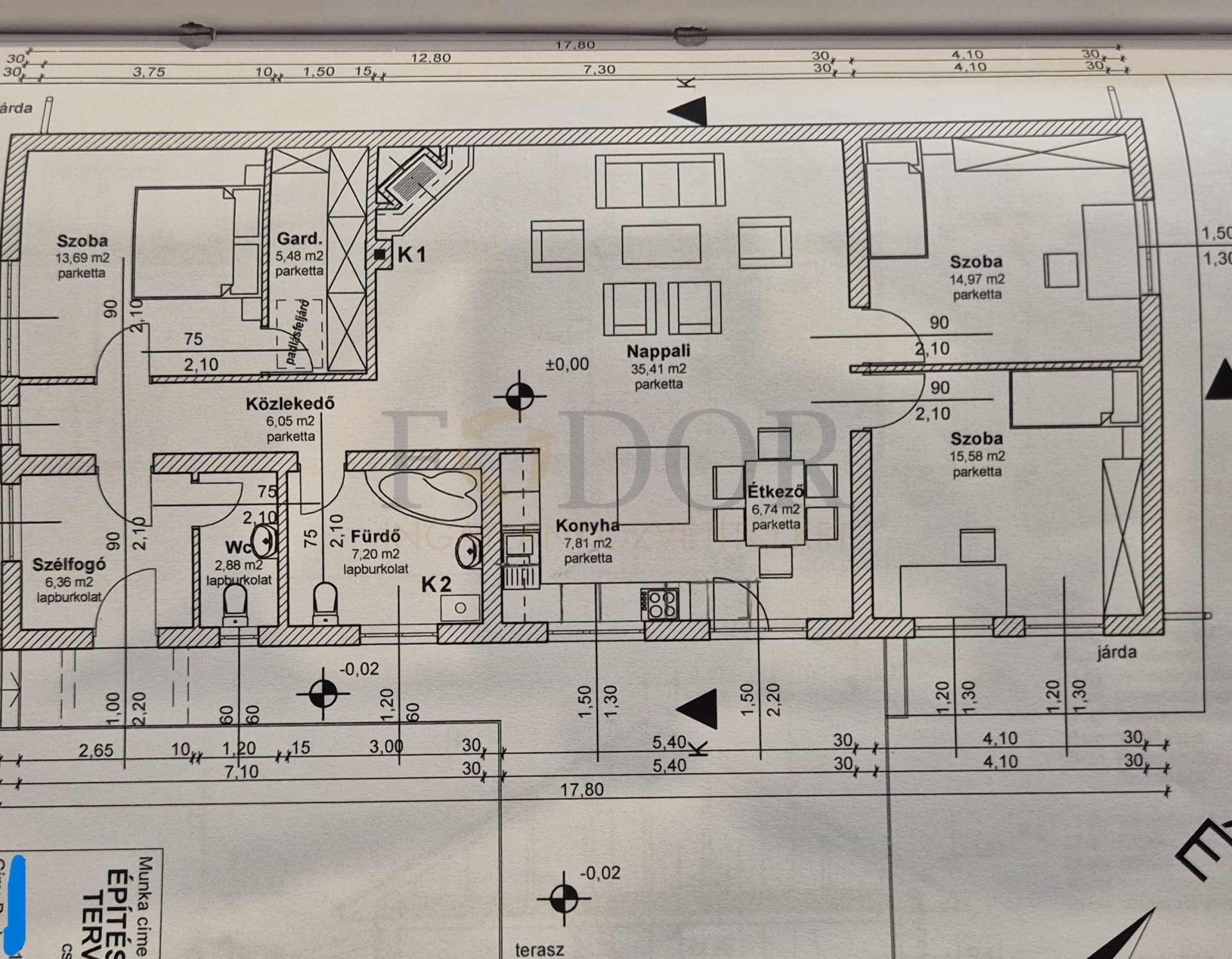 • Amerikai konyhás nappali + 3 külön nyíló szoba