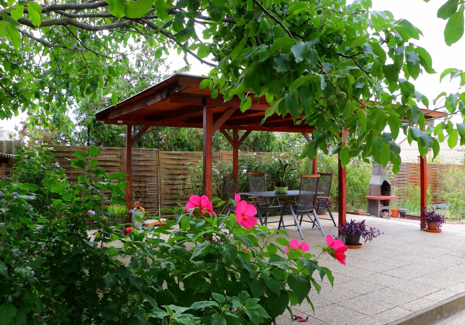 A 639 m²-es telek szépen használható, zöld környezetet biztosít, ahol minden adott a kikapcsolódáshoz: