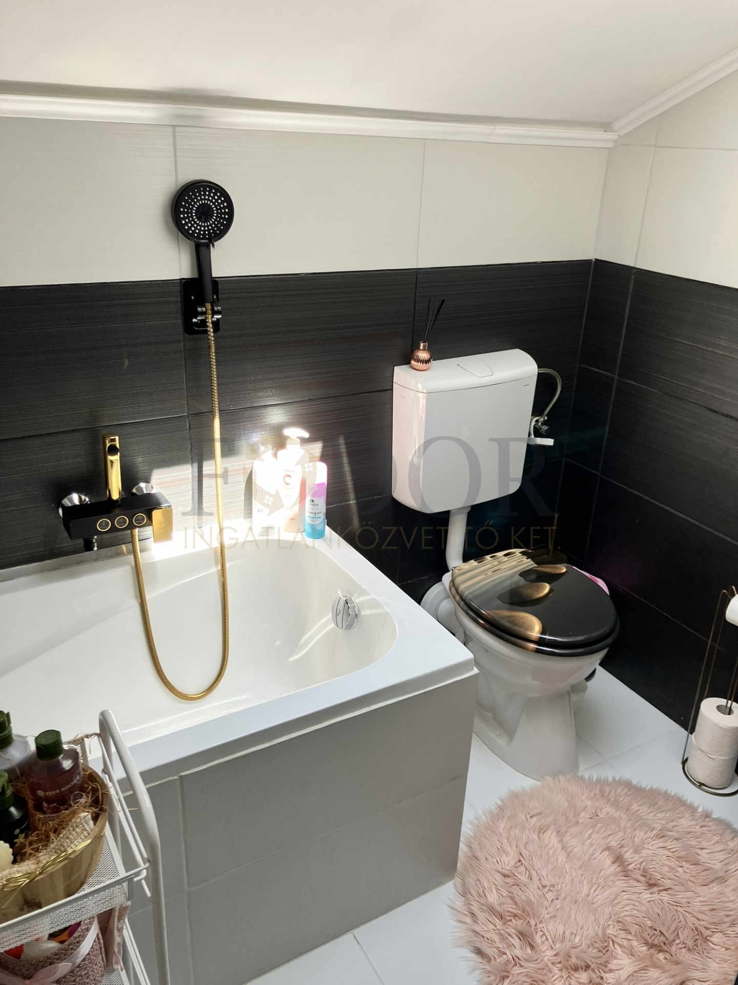 • 1 fürdőszoba (zuhanyzóval, káddal és WC-vel)