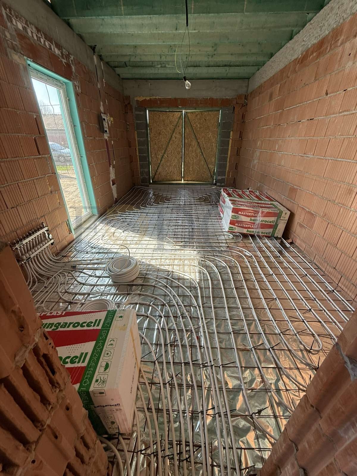 • Hőszivattyús padlófűtés + fürdőben elektromos törölközőszárító radiátor