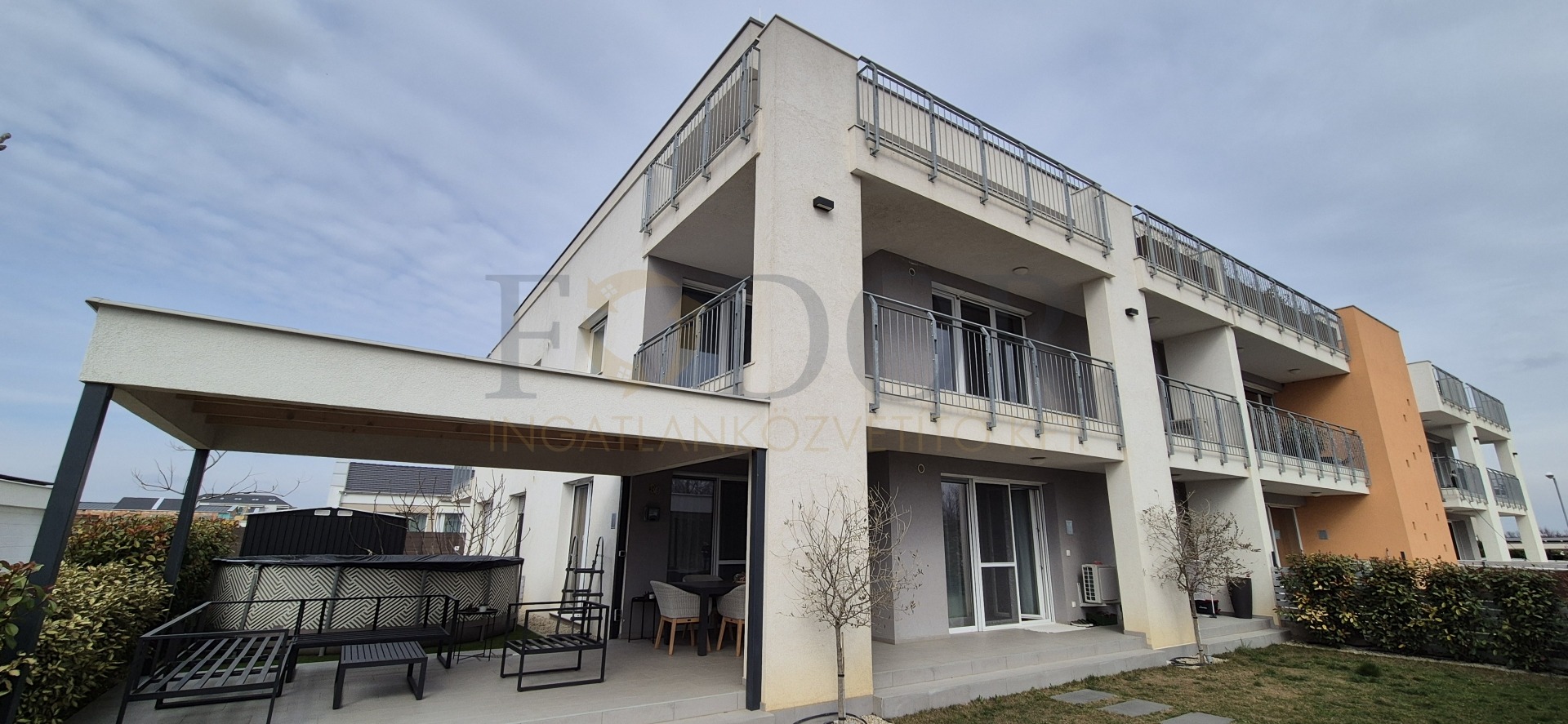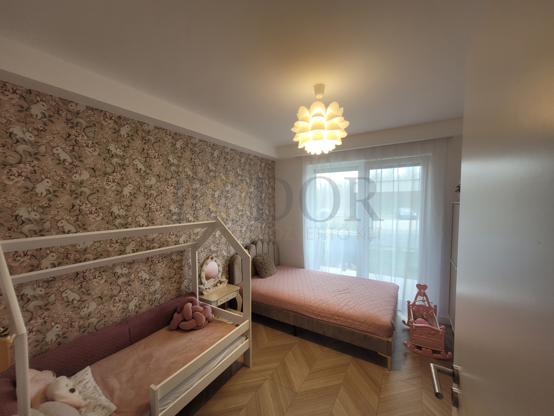A lakáshoz 2 autó számára kényelmes, fedett parkoló és egy tároló is tartozik, amelyek az árban benne vannak. A vételár a gyerekszobában lévő bútorokon kívül tartalmazza a teljes berendezést, beleértve az igényes, minőségi konyhabútort, a beépített sütőt, főzőlapot, mosogatógépet és az előszobabútort.