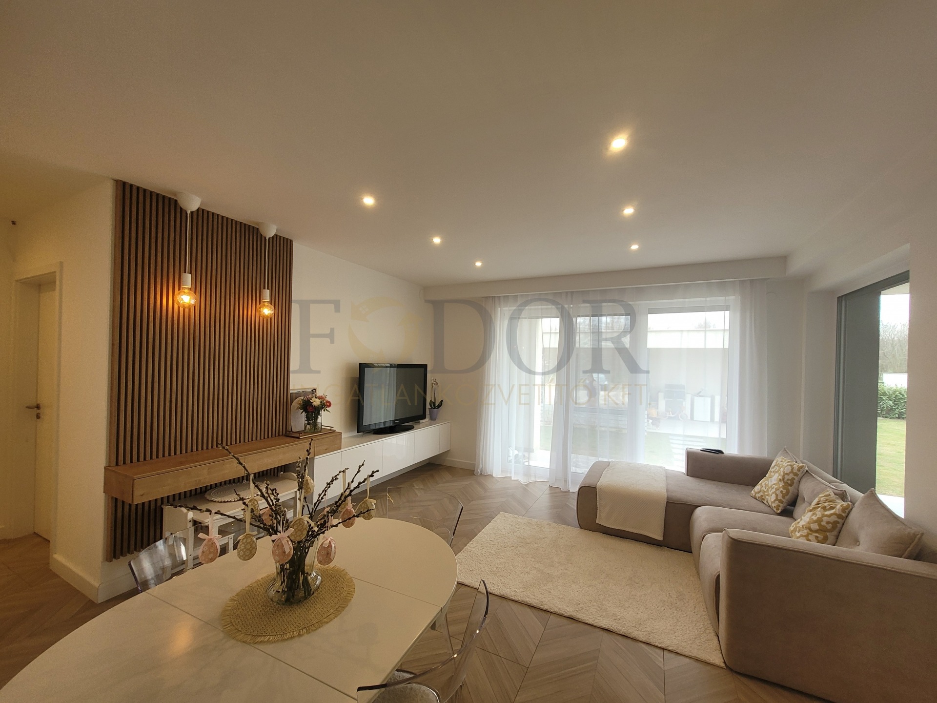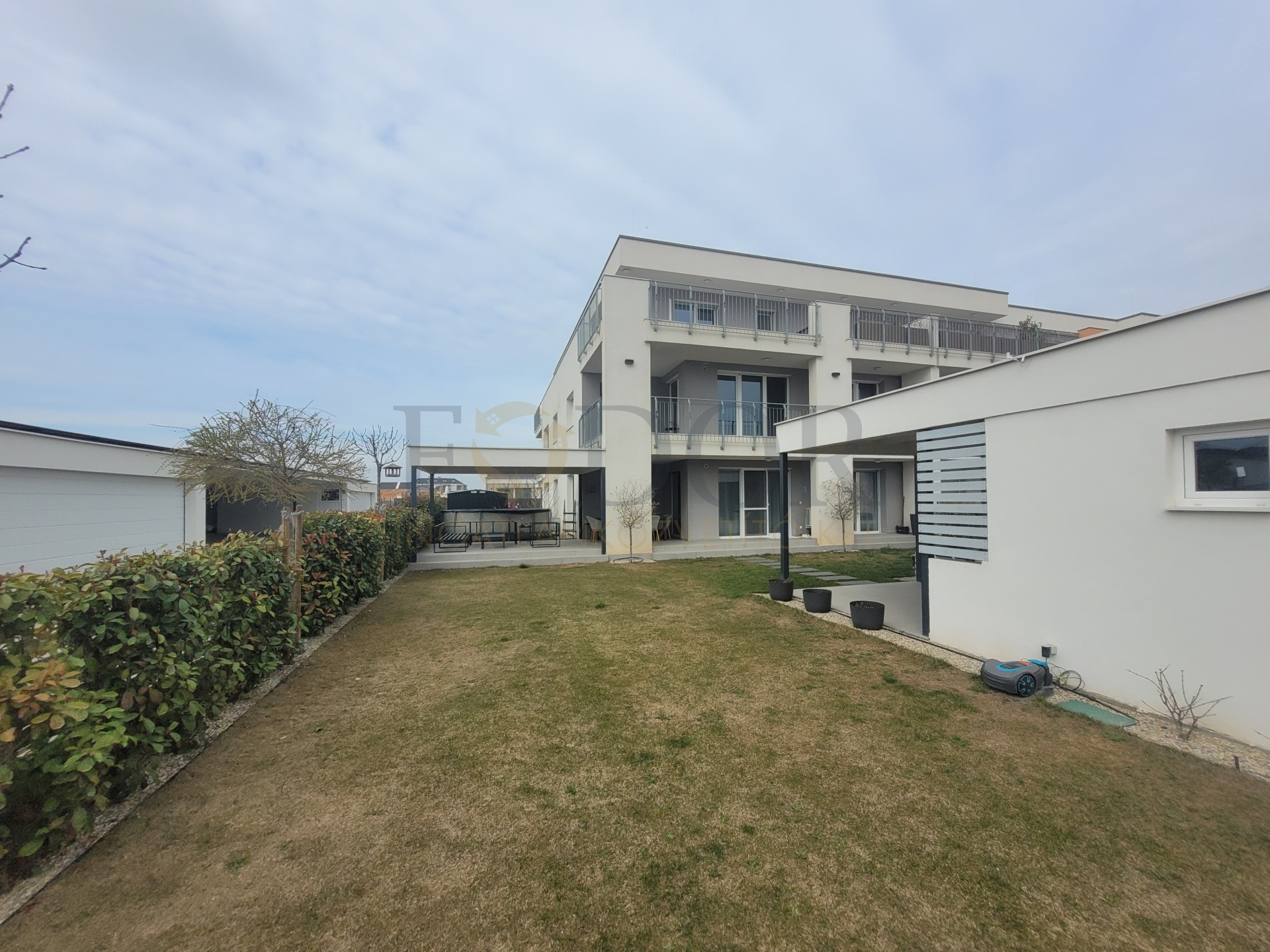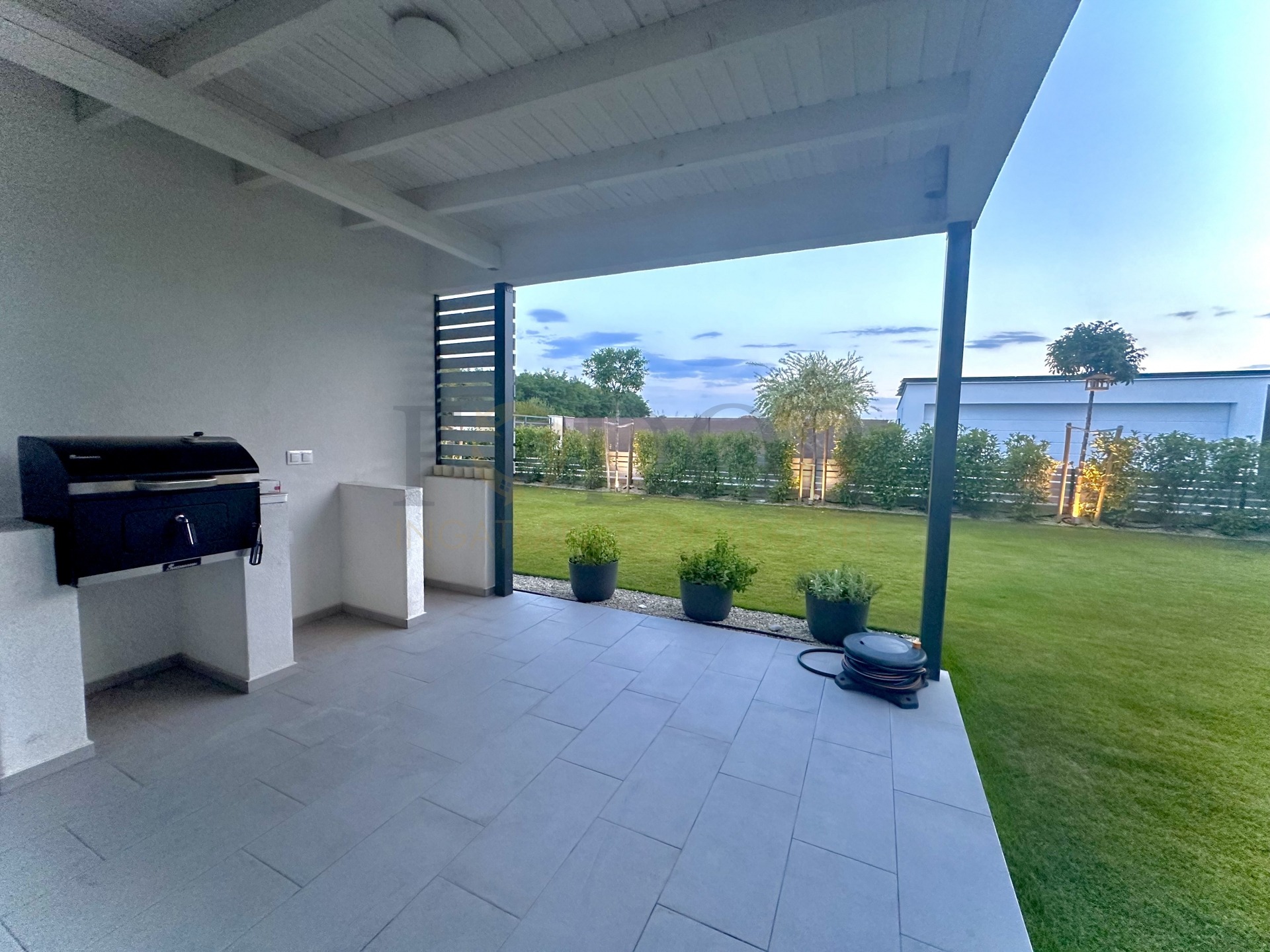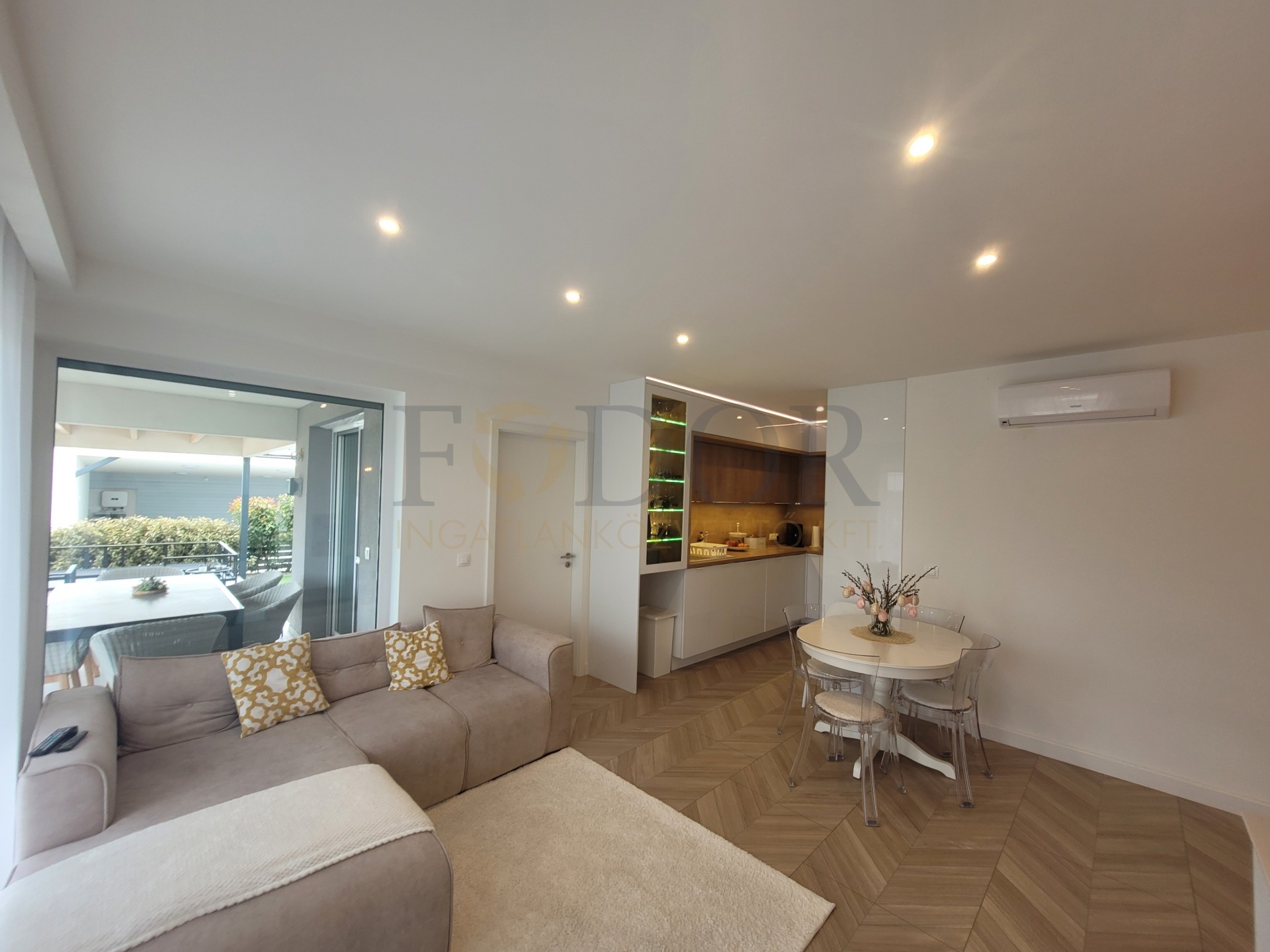 A 251 m²-es saját, leválasztott kertje az egyedi öntözőrendszer és robotfűnyíró segítségével valódi zöld oázis lesz, ahol a természet közelségét élvezheti. A nappaliban található prémium 3.2 kW-os Polar inverteres klíma kényelmet biztosít bármely évszakban.