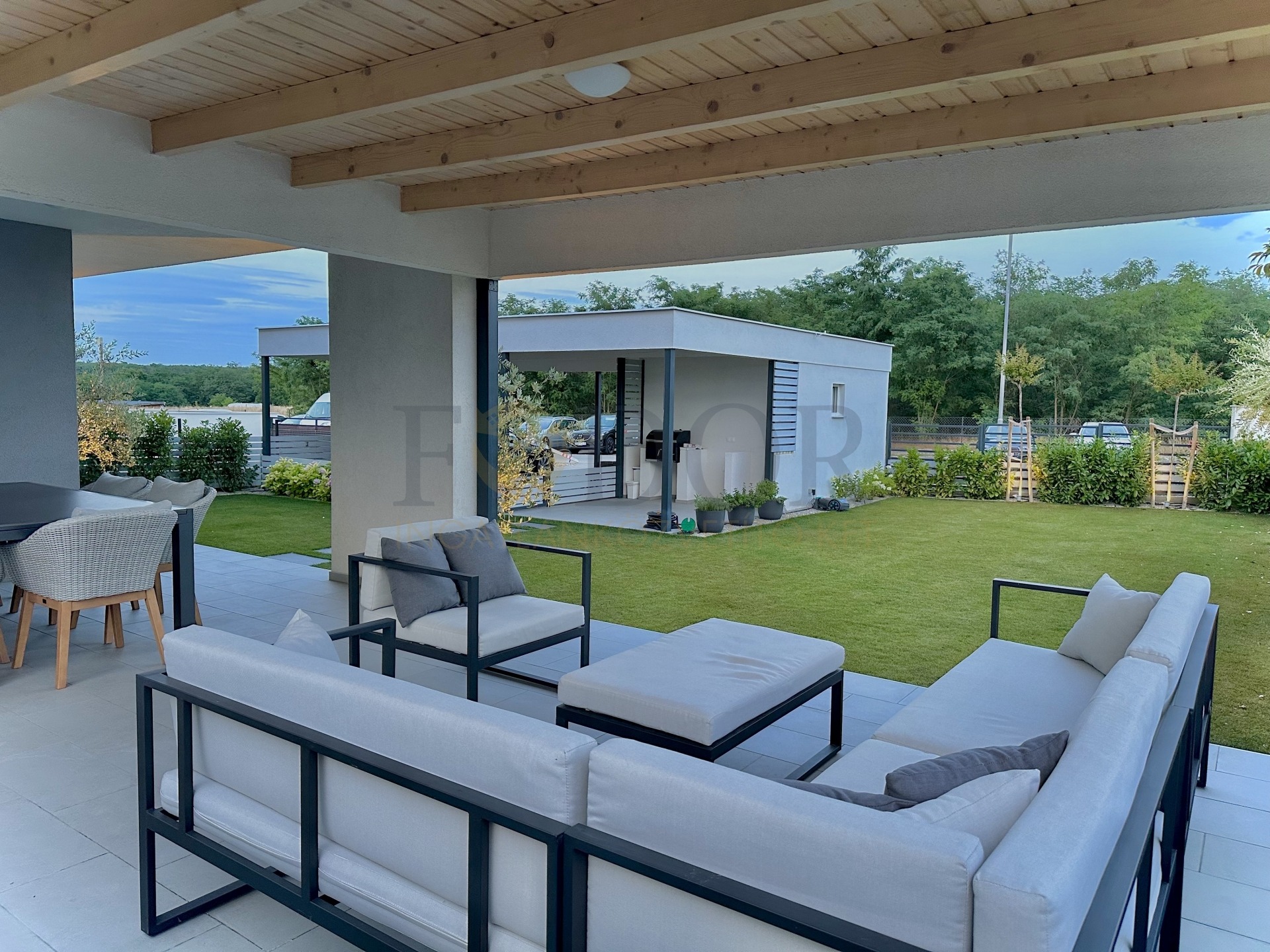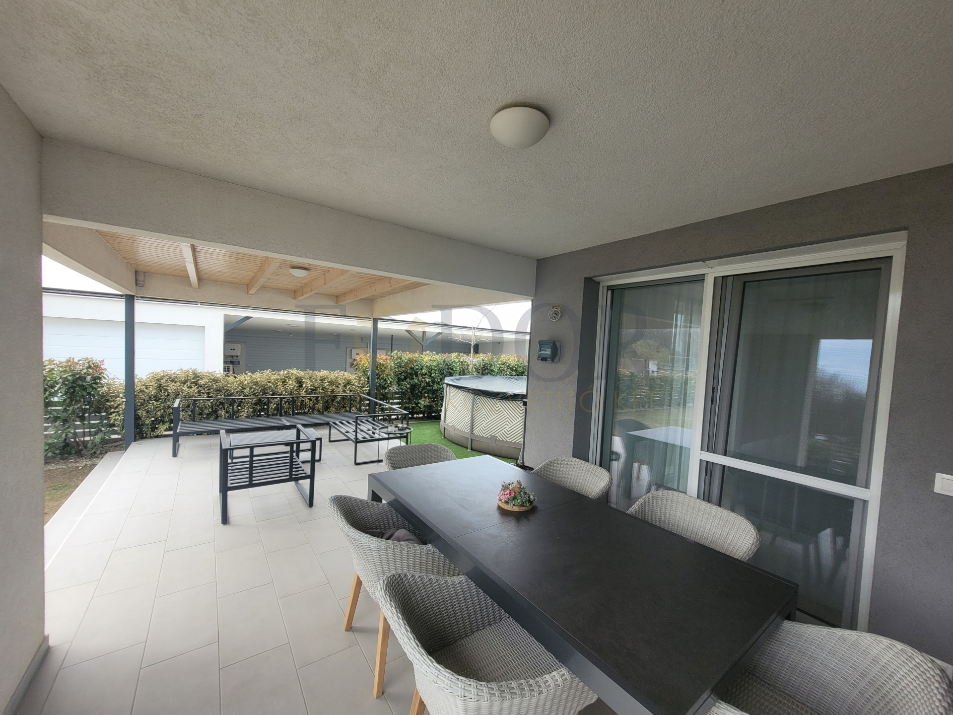Az 50 m²-es terasz ideális helyszínt biztosít a közös családi ebédekhez, baráti beszélgetésekhez és aktív pihenéshez, ahol élvezheti a napsütést és a természetet.