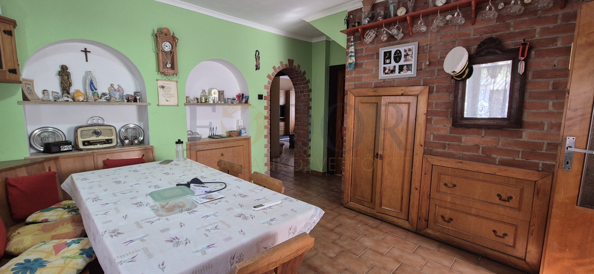 Az 1985-ben épült, salakblokk szerkezetű ház egy közel 1000 m²-es telken fekszik, amely ideális egyensúlyt kínál a jól használható sík kert és a természetközelibb, dombos területrész között.