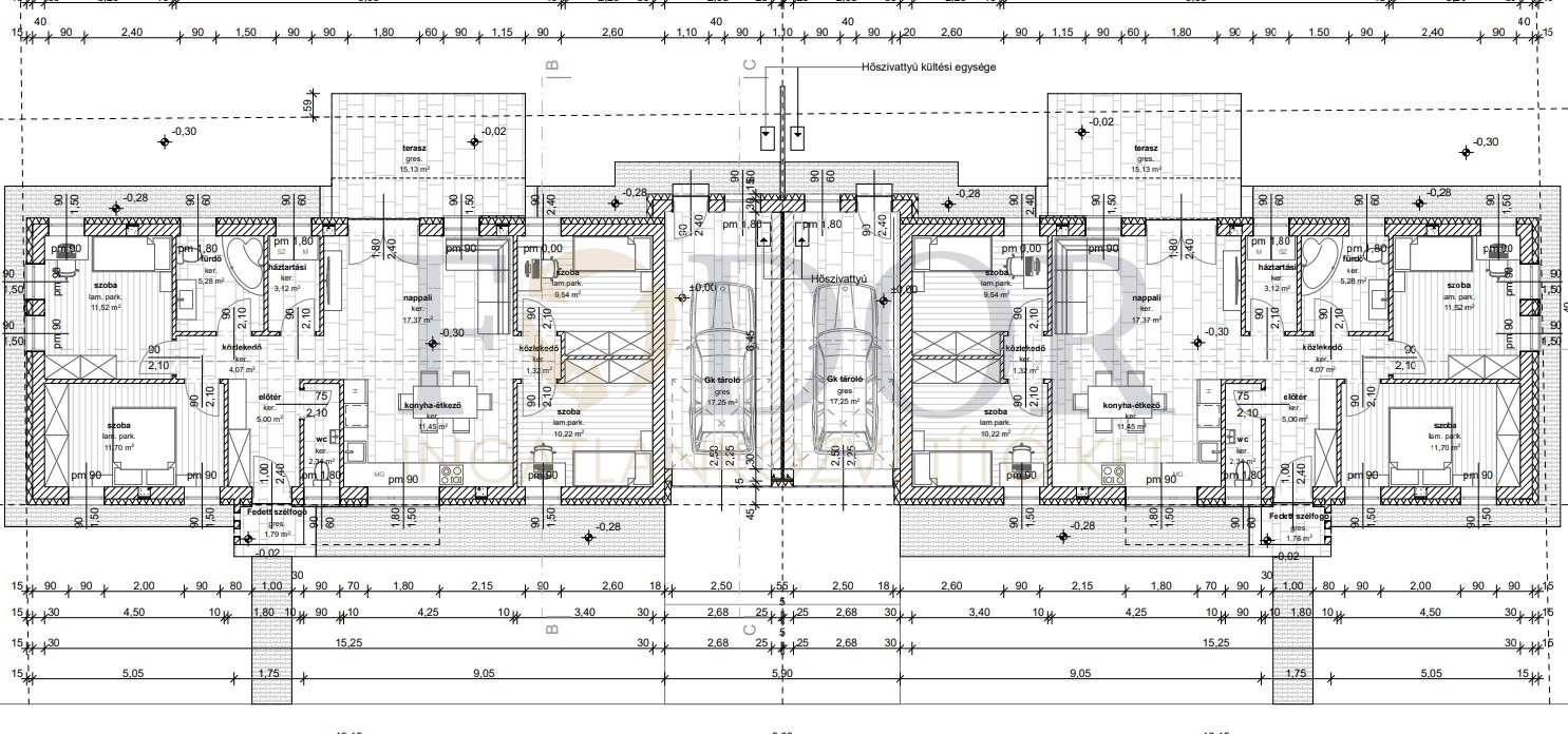 Saját garázs: 17 m² - gépészeti helyiséggel