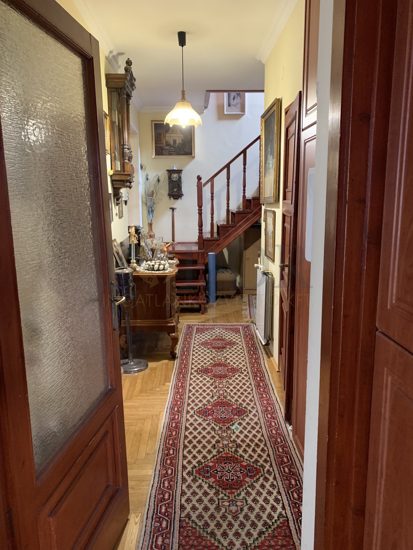 • Magasföldszint: tágas nappali–étkező–konyha (4,5 m belmagasság, cserépkályha, kamra rejtett ajtóval), vendégszoba, zuhanyzós fürdőszoba, valamint 10 m²-es utcára néző terasz.