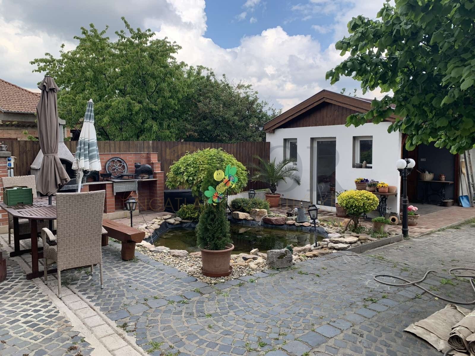 • Hangulatos hátsó kert halas tóval és sütögetőhellyel
