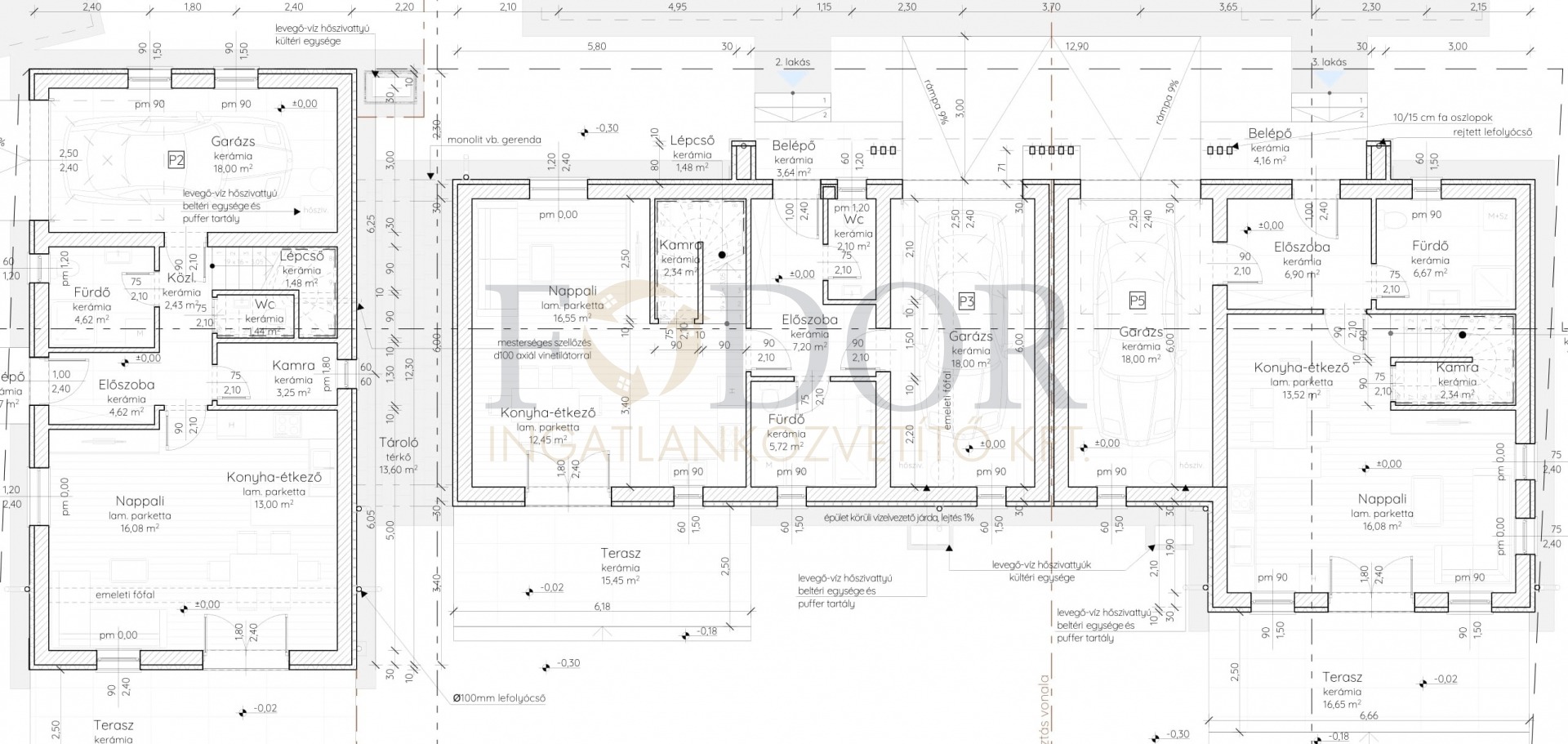 • Levegő–víz hőszivattyús rendszer, padlófűtéssel mindkét szinten, fürdőkben törölközőszárítós radiátorral